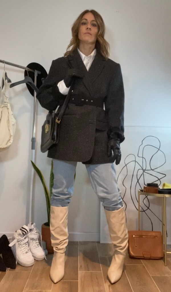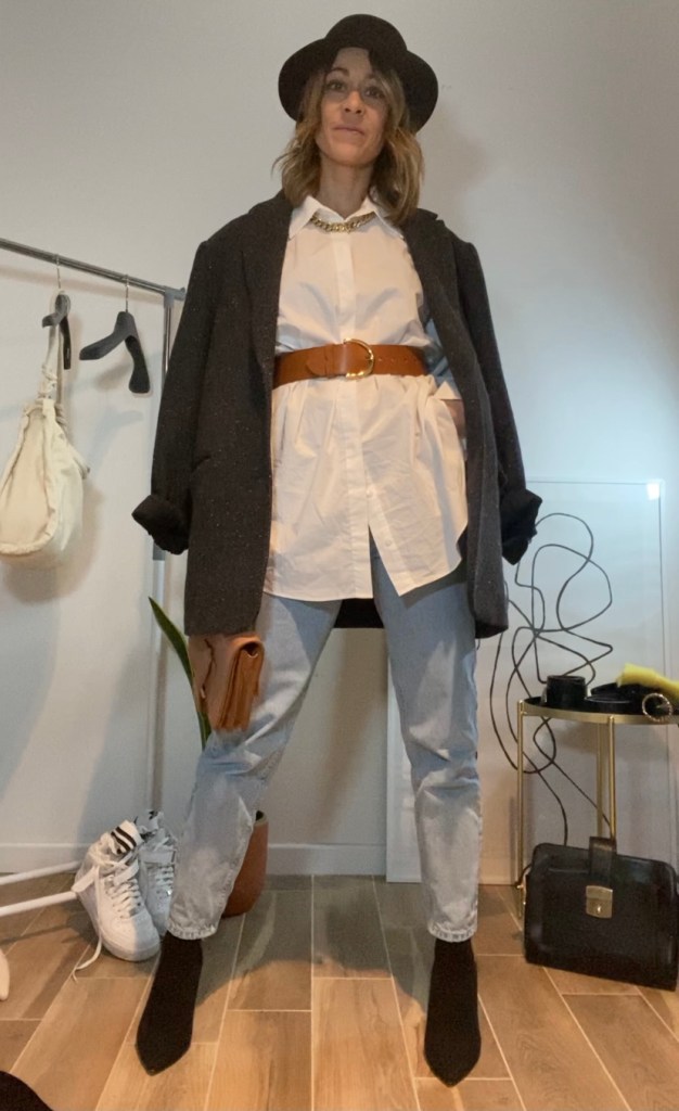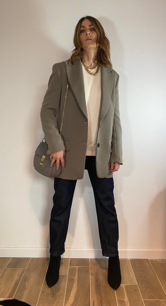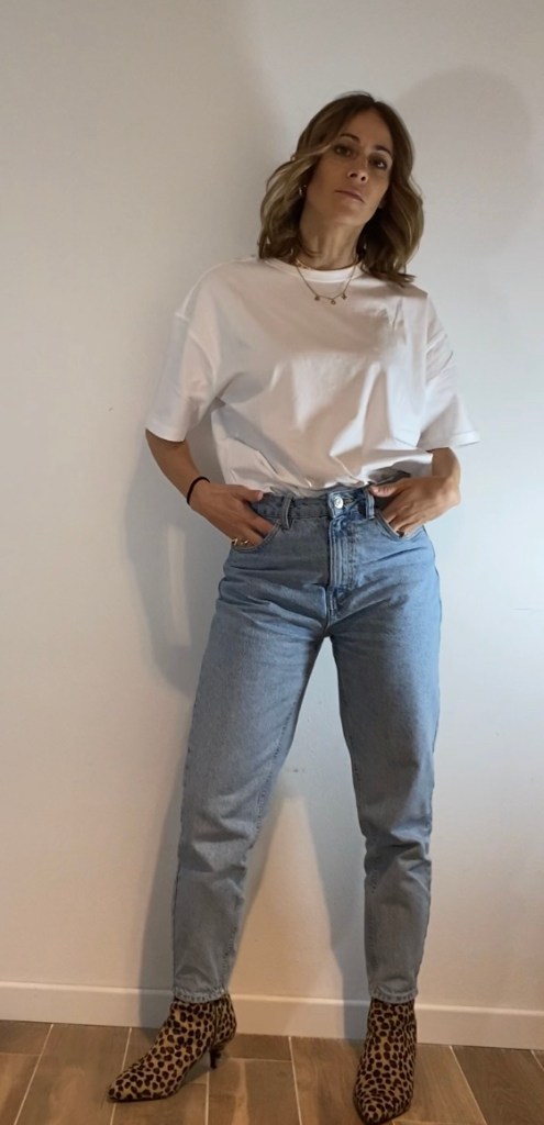 Il jeans con linea dritta e un po’ sfuggita è un’altra linea che mi piace particolarmente e che riesco ad indossare bene sia con la ginnica che con uno stivale.