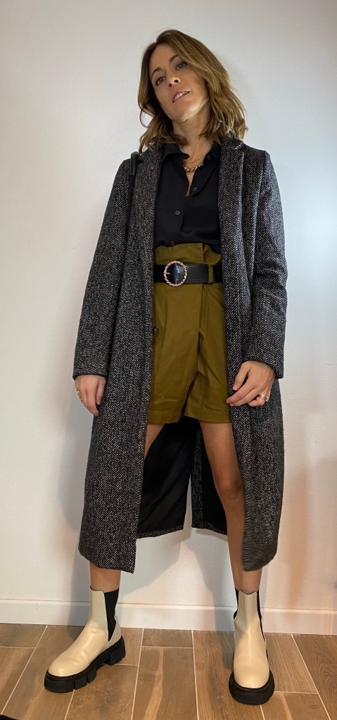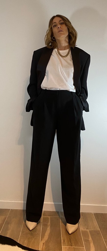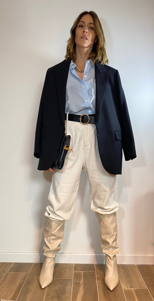 La linea palazzo è un’altra delle linee che apprezzo perché allunga la figura ed è molto attuale, unico neo che la devi mettere per forza con i tacchi (se sei bassa come me), per le donne alte molto giusta anche con stivale basso suola track o sneackers.