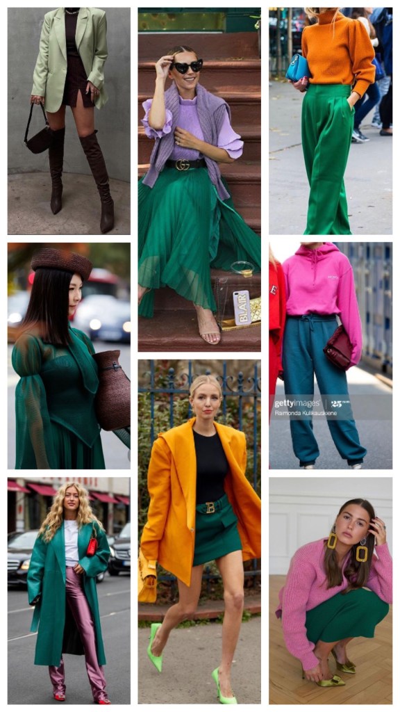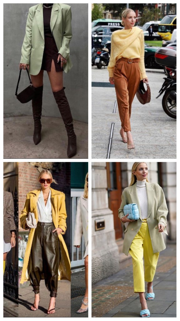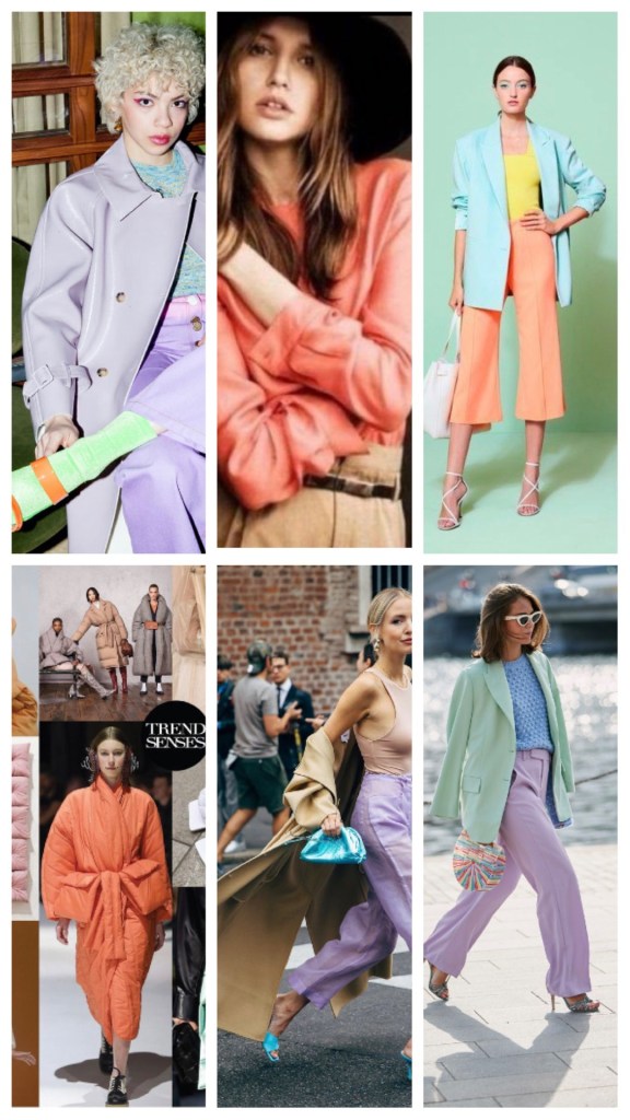 Per dimostrarvi quello di cui sto parlando ho pensato di raggruppare i colori che vediamo più indossati in questo momento è darvi un’idea di come poterli mettere assieme ed accostare Ad altre tonalità.