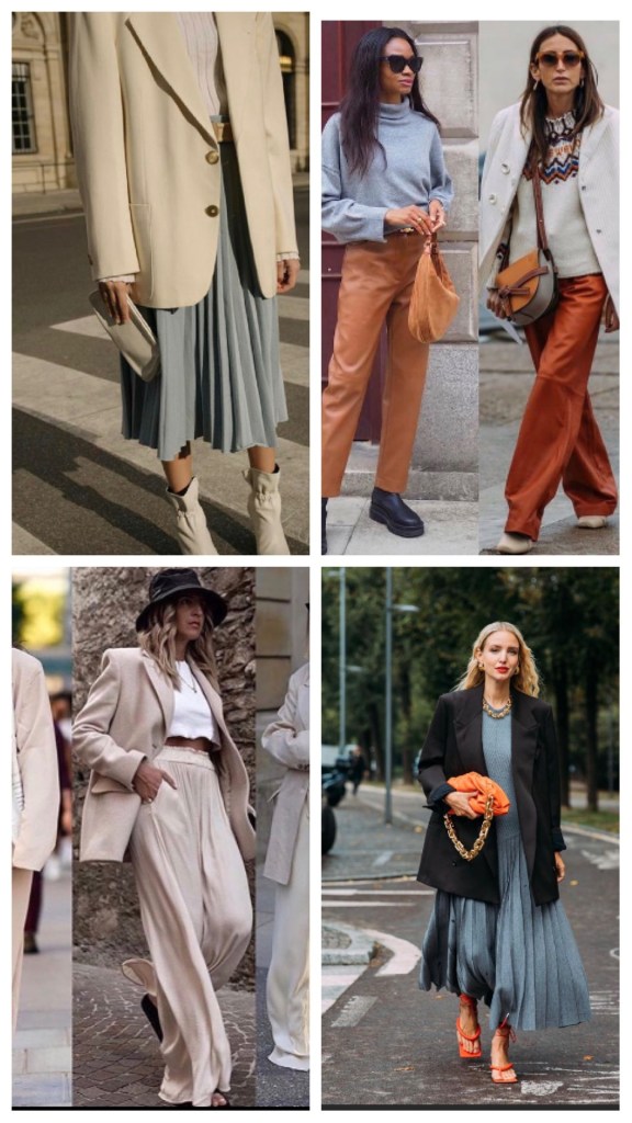 Io posso dare dei suggerimenti e soprattutto per come abbinarli in queste stagioni per essere attuali e non fuori moda, come colore base andrei sui grigi, marroni e bianco latte.
